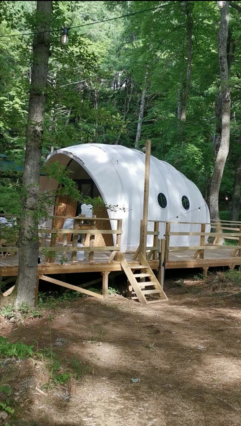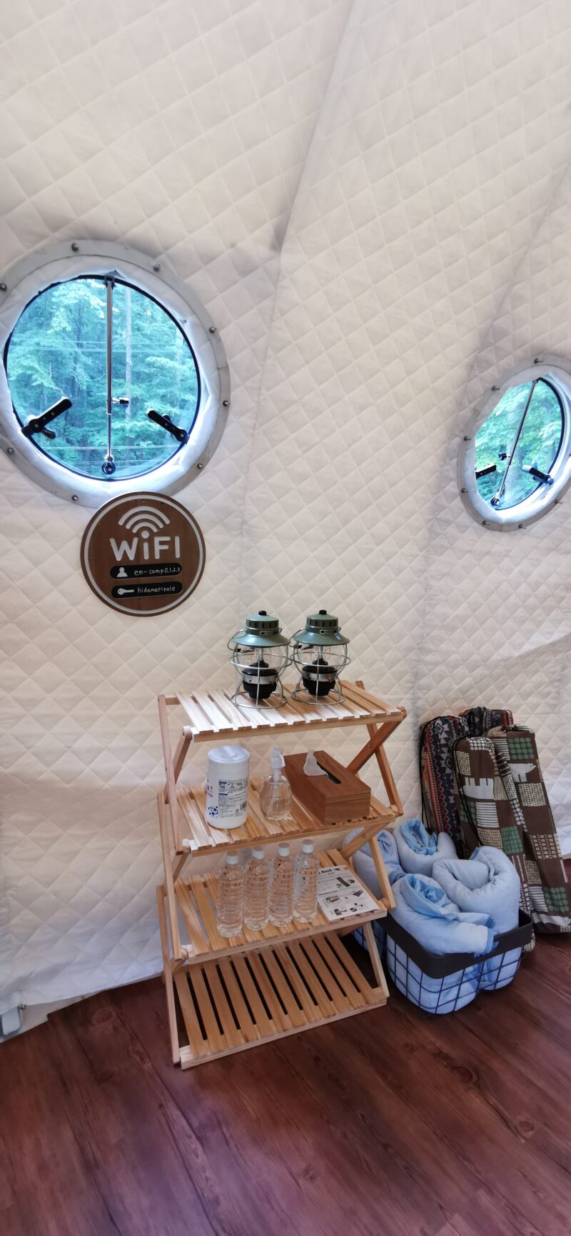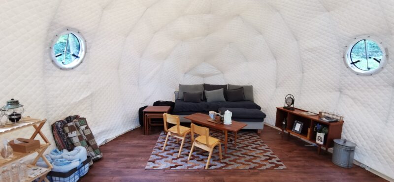 出来たてホヤホヤのシェル型テントです!日本で初めての貝殻型を導入。ここの施設内でも最大のテントとなります。https://encamp-glamping.com/guest-room