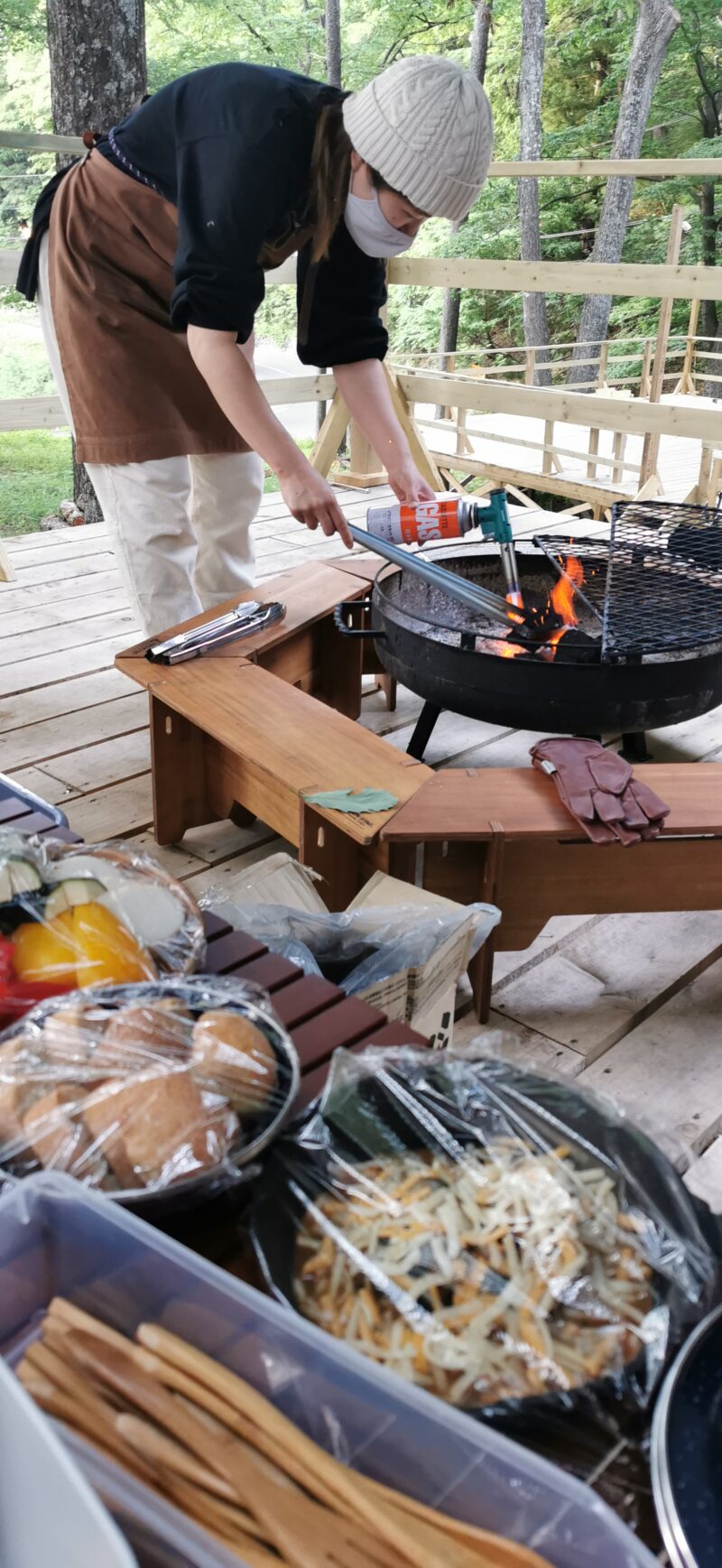 待ちに待ったバーベキュー!スタッフの和佳さんが火起こしまでしてくれました〜。