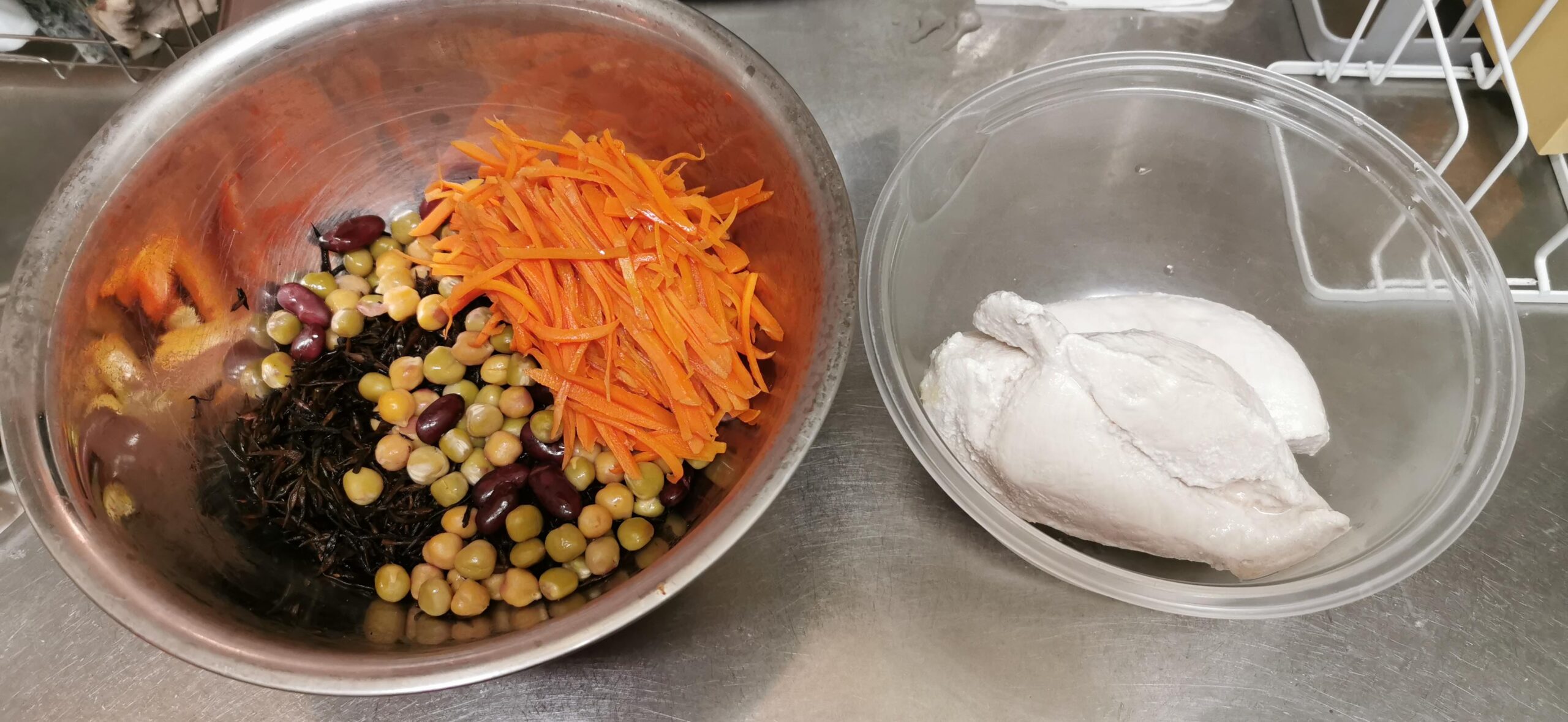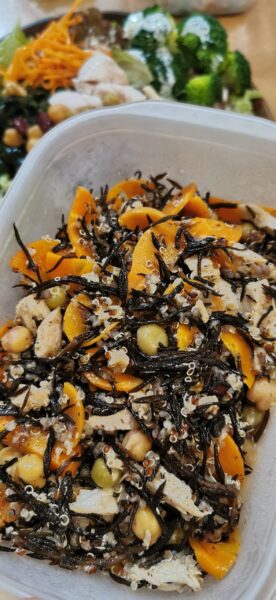「鶏ひじきサラダ」にはキヌアも入れて、さらに食物繊維を最強にしました!(笑)