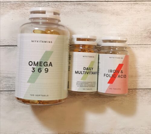 myproteinのマルチビタミンと葉酸&鉄を飲んでいます。